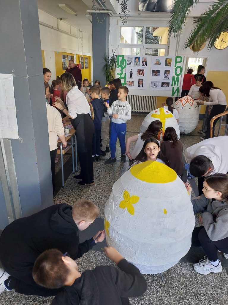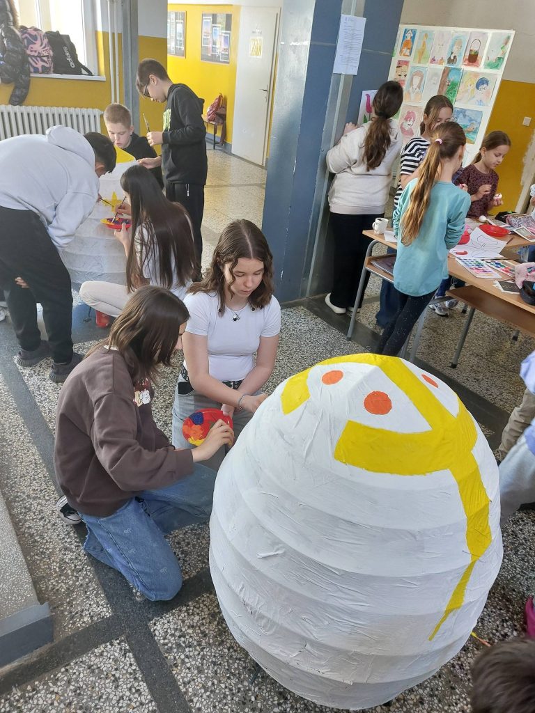 Навикли смо на мала васкршња јаја, али наши наставници су одлучили да нас изненаде и подигну лествицу (буквално!). Док су спретни прстићи украшавали стандардна јаја, у центру пажње нашла су се џиновска јаја – права мала ремек-дела која су за ову прилику осмислили и направили наши креативни ментори.