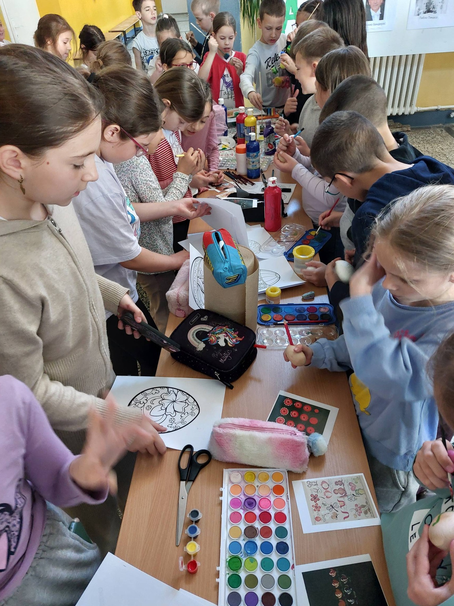 У ходницима наше школе данас се осећао мирис креативности, а тишину часова заменио је звук четкица које плешу по необичним платнима. Традиционално фарбање јаја ове године добило је потпуно нову, магичну димензију!